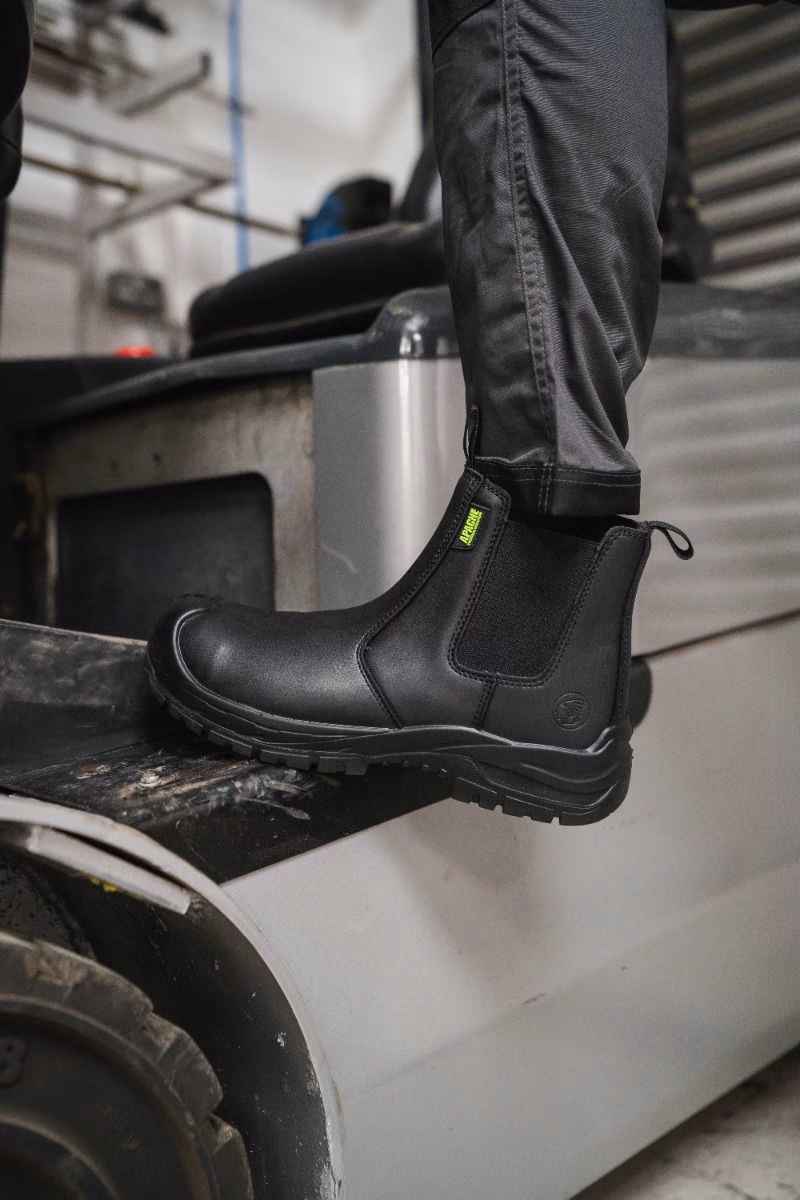 Apache Brooks — where comfort meets eco-conscious durability. Featuring a water-resistant GRS-certified recycled leather upper, this 100% non-metallic dealer boot combines a lightweight composite toe and midsole with a wide fit for all-day comfort. The elasticated side makes for easy entry, while a tough scuff cap and high-spec PU/PU outsole deliver lasting protection, grip, and fuel oil resistance on any site.