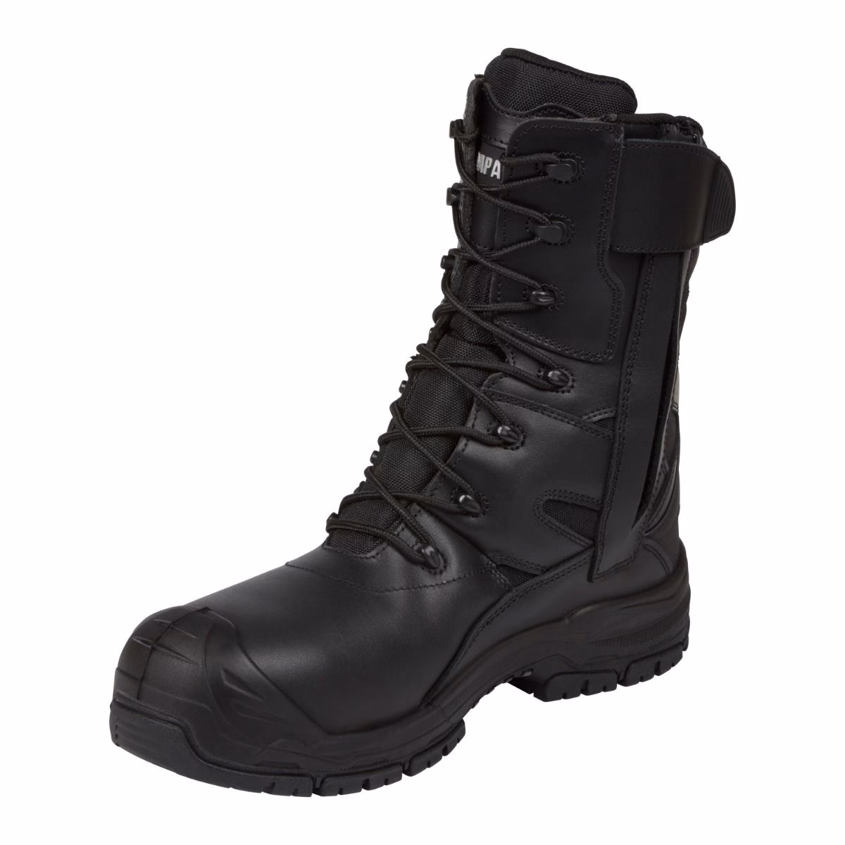 A technical high leg non-metallic safety boot. This boot incorporates premium full grain leather uppers combined high abrasive resistant Cordura material. A durable anti-slip rubber outsole which is heat resistant to 300°c. The side zip facility allows easy/quick removal and it‚Äôs breathable waterproof internal membrane will keep your feet free of moisture and water ingress at all times.