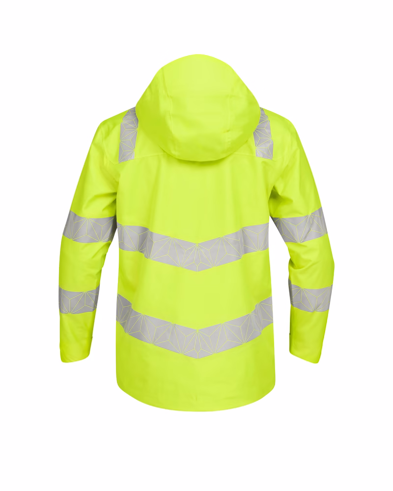 Practical Fit & Function: Both include helmet-compatible hood, taped seams, highly rated waterproofing and breathability, adjustable fit features. So the decision is largely driven by required Hi-Vis colour / workplace standard.